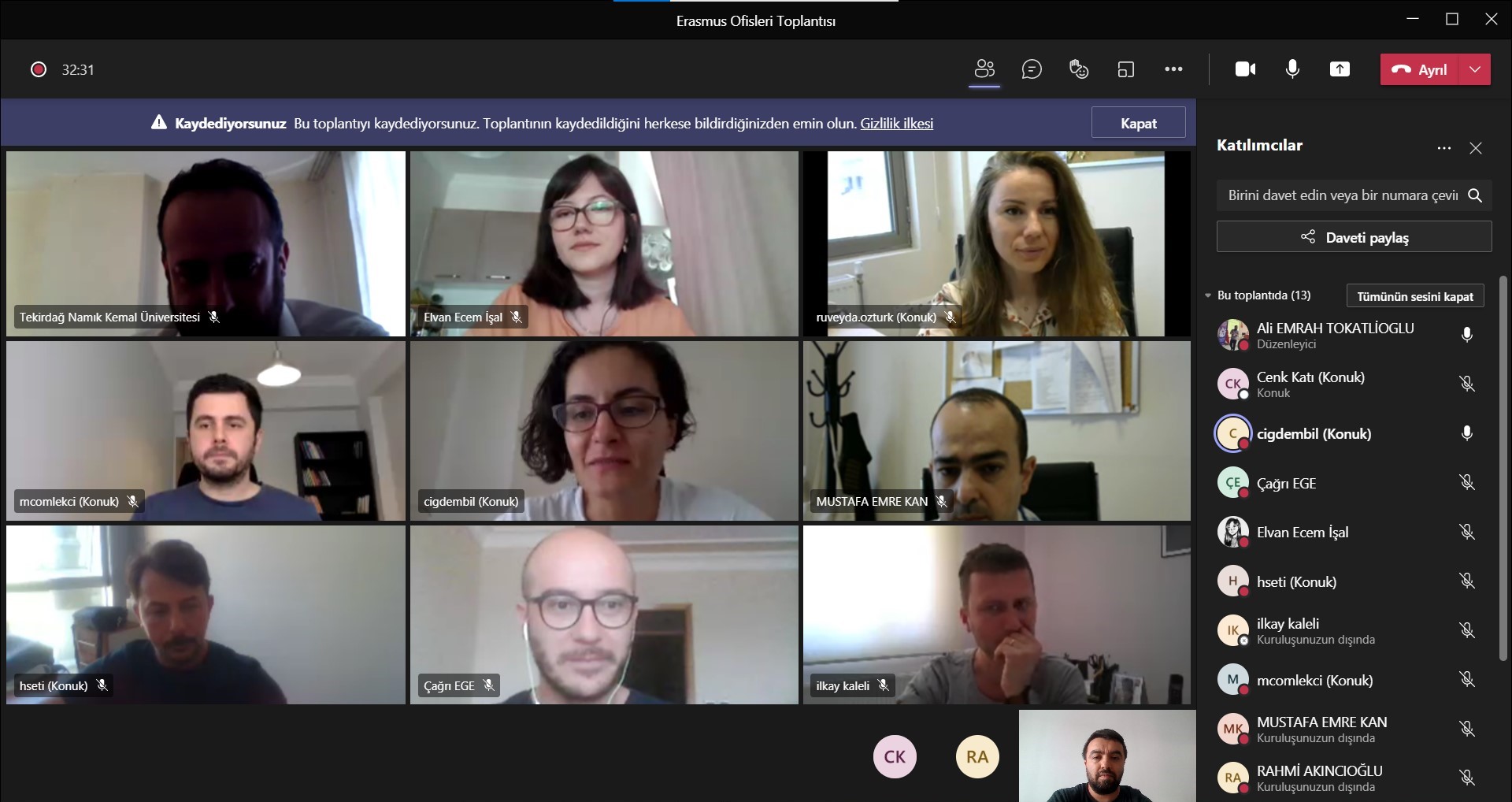 Trakya Üniversiteler Birliği Dış İlişkiler Alt Kurulu etkinlikleri kapsamında Erasmus Ofisleri toplantısı 30 Haziran 2021 tarihinde saat 14.00’de online olarak gerçekleşti.