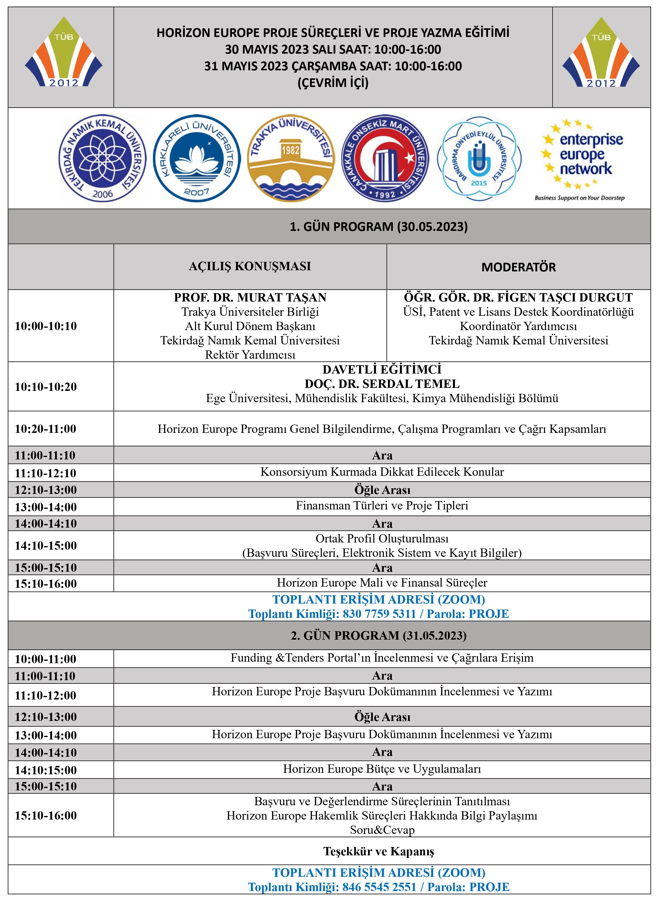 TRAKYA ÜNİVERSİTLER BİRLİĞİ(TÜB) KAPSAMINDA PROJE AÇG TARAFINDAN HORİZON EUROPE PROJE SÜREÇLERİ VE PROJE YAZMA EĞİTİMİ DÜZENLENECEKTİR 30-31 MAYIS 2023 SAAT: 10.00-16.00