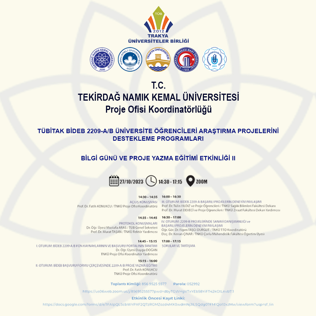 Tekirdağ Namık Kemal Üniversitesi Proje Ofisi Koordinatörlüğü Tarafından