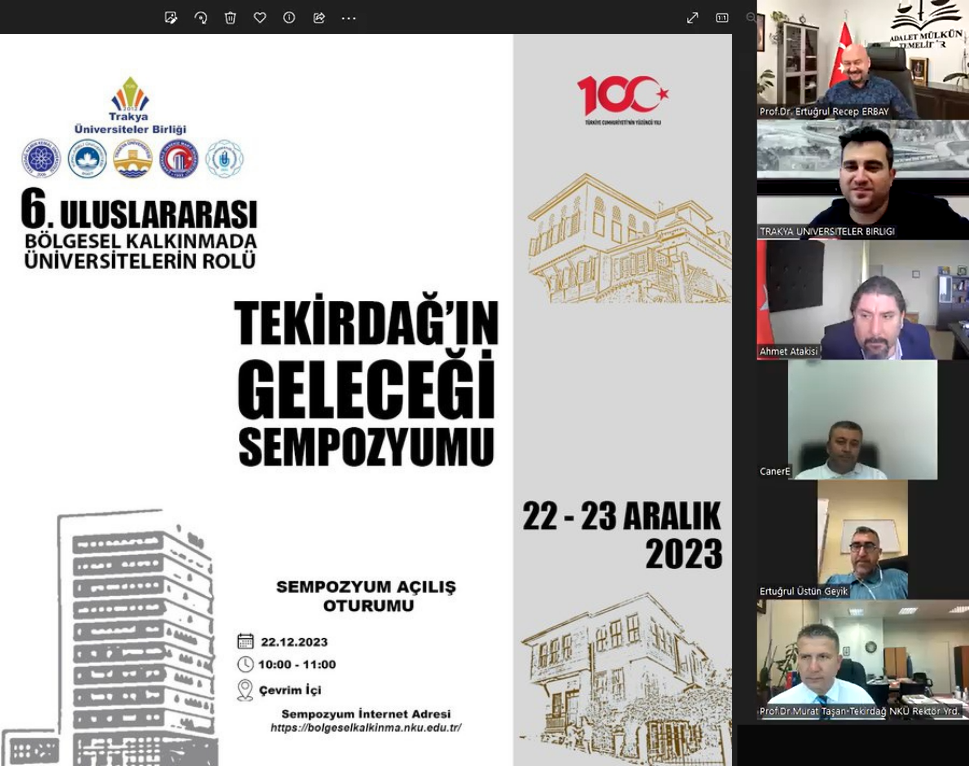 Trakya Üniversiteler Birliği (TÜB) tarafından düzenlenen “6. Uluslararası Bölgesel Kalkınmada Üniversitelerin Rolü: Tekirdağ’ın Geleceği Sempozyumu” Tekirdağ Namık Kemal Üniversitesi’nin ev sahipliğinde çevrim içi olarak gerçekleşti.