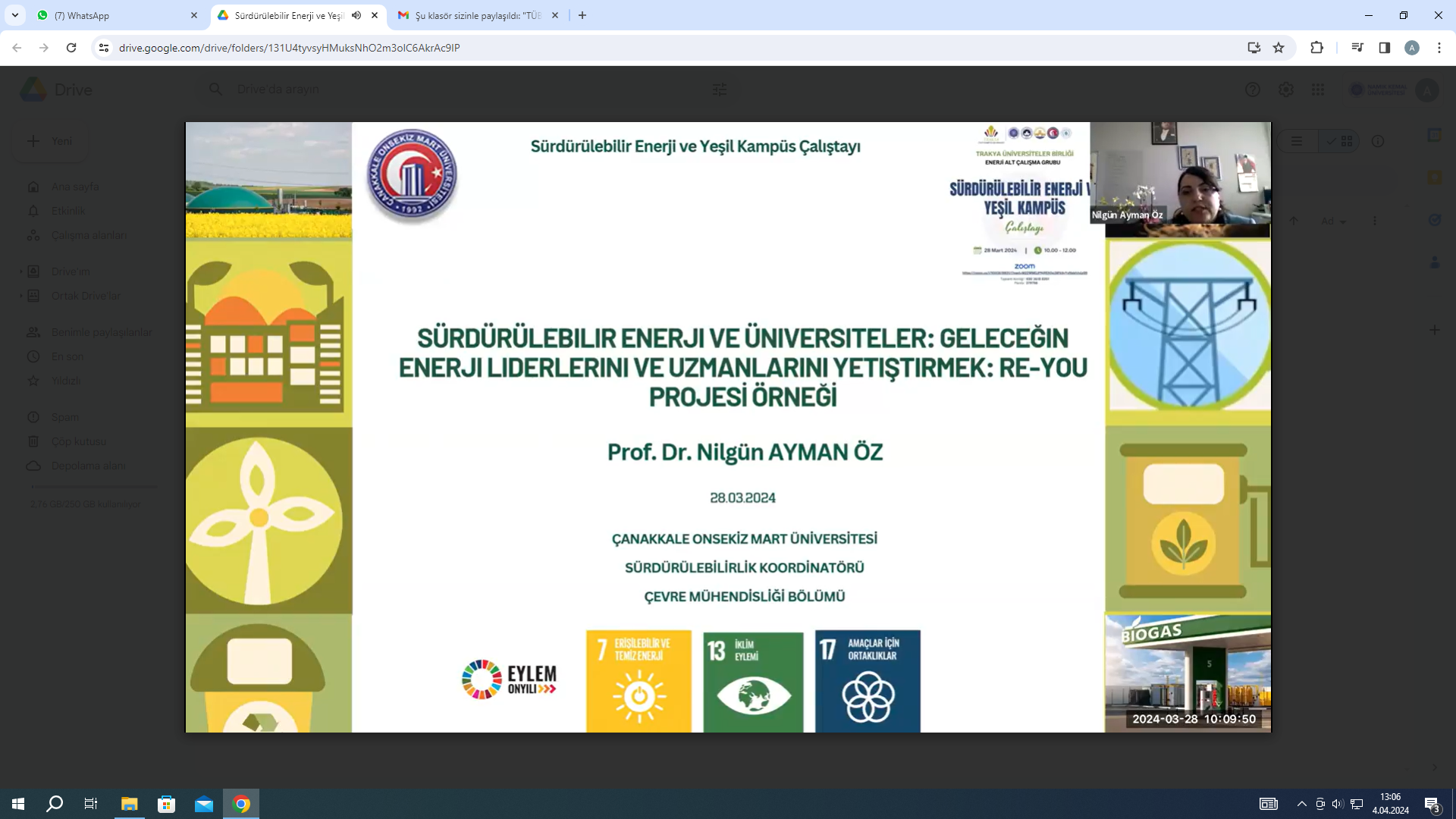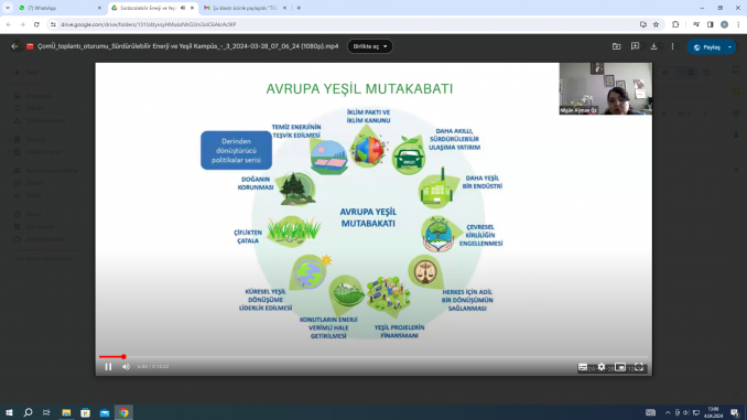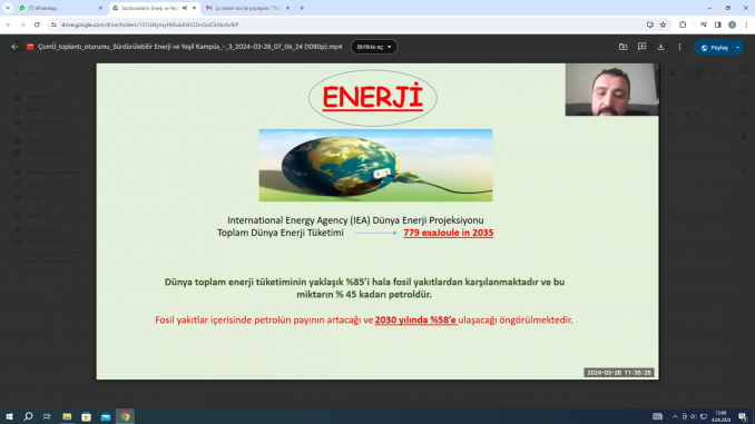 Etkinliğin moderatörlüğünü Çanakkale Onsekiz Mart Üniversitesi Enerji Kaynakları Uygulama ve Araştırma Merkez Müdürü Öğr. Gör. Dr. Savaş GÜRDAL üstlenirken, ilk sunumu yapan Çanakkale Onsekiz Mart Üniversitesi’nden Prof. Dr. Nilgün AYMAN ÖZ “Sürdürülebilir Enerji ve Üniversiteler: Geleceğin Enerji Liderlerini ve Uzmanlarını Yetiştirmek: RE-YOU Projesi Örneği” konusunda sunumunu gerçekleştirdi. Ardından Trakya Üniversitesi’nden Çevre Mühendisi Tuba DOĞRU “Sürdürülebilir Enerji ve Yeşil Kampüs Çalıştayı Green Metric Başvuru Süreci” konulu sunumu ile Çalıştaya katkıda bulundu. Doç. Dr. Harun ÖZBAY, “Bandırma Onyedi Eylül Üniversitesi Çatı Üstü GES Planlaması” konulu sunumunu yap işlet devret modeli ile üniversitede yapılan uygulamaları anlattı. Doç. Dr. Hüseyin ŞANLI ve Doç. Dr. Sıla BARUT GÖK ise “Tekirdağ Namık Kemal Üniversitesi Yemekhanesinde Oluşan Atık Kızartma Yağlarından Üretilen Biyodizelin Üniversite Dizel Araçlarında Kullanımı” konulu sunumunu gerçekleştirdi. Kırklareli Üniversitesi’nden Arş. Gör. Bekir Adem ÇAKMAKÇI “KLÜ Kayalı Kampüsünün Rüzgar Potansiyellerinin Belirlenmesi” konulu sunumu ile katkıda bulundu.