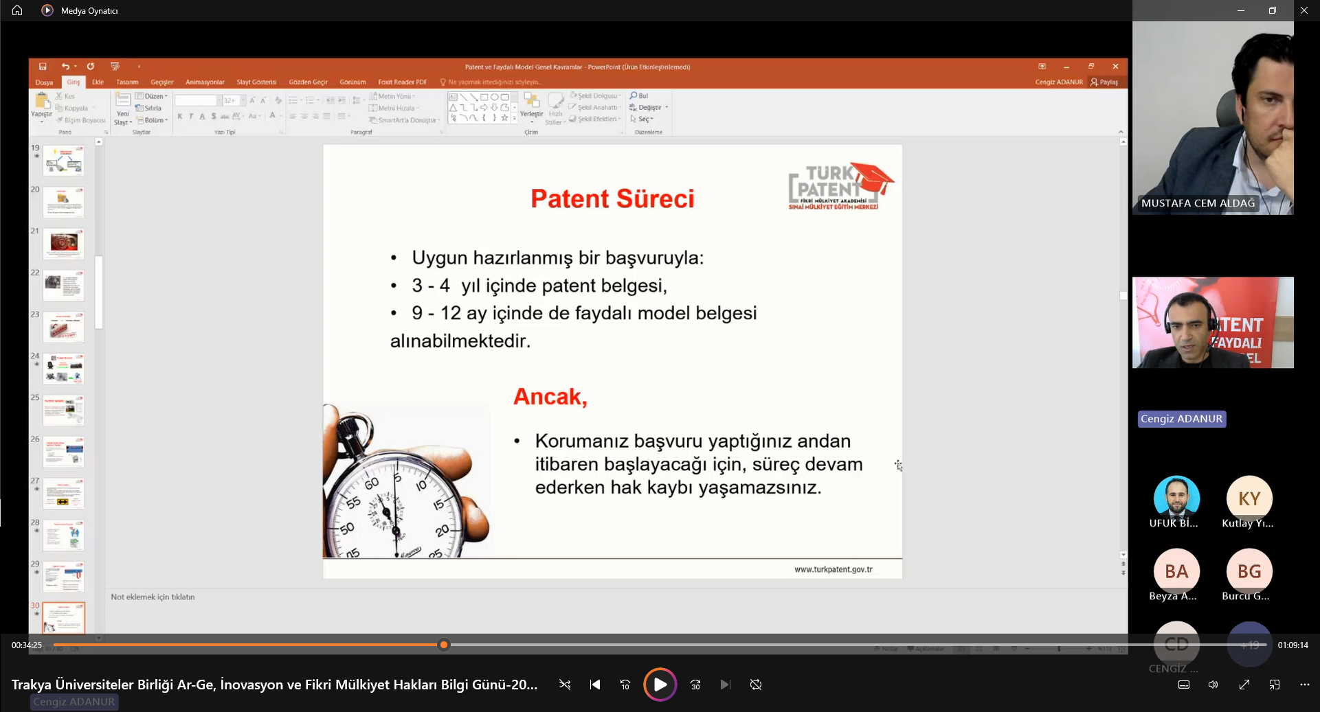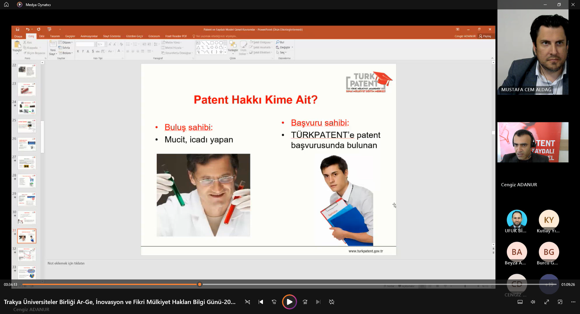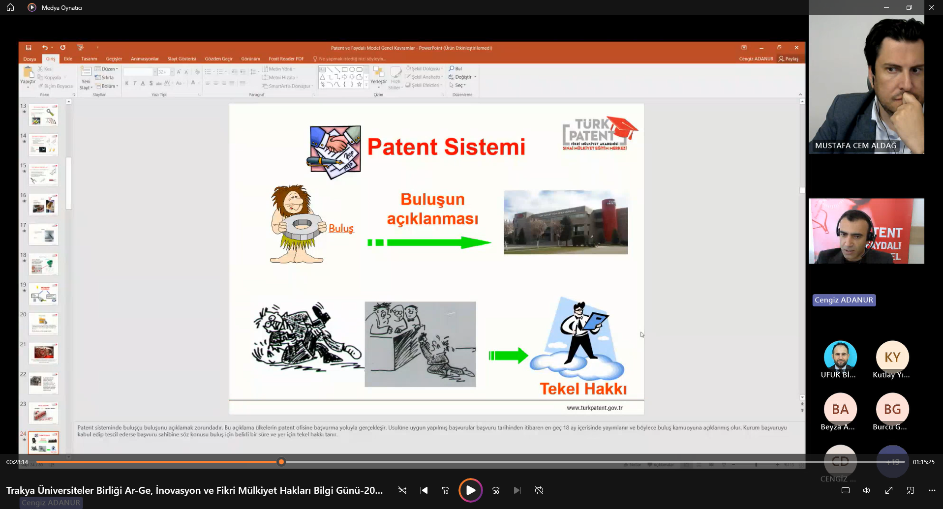 “Ar-Ge, İnovasyon ve Fikri Mülkiyet Hakları Bilgi Günü” Semineri’ne  Trakya Üniversiteler Birliği Genel Sekreteri Dr. Öğr. Üyesi Mustafa ARAS, moderatör olarak Bandırma Onyedi Eylül Üniversitesinden Öğr. Gör. Dr. Mustafa Cem ALDAĞ, sunumları ile Türk Patent ve Marka Kurumundan Cengiz ADANURTrakya Üniversiteler Birliğine üye üniversitelerin yanı sıra ülkemizin önde gelen üniversitelerinde çalışan çok sayıda akademisyen ve öğrenciler katıldı.
