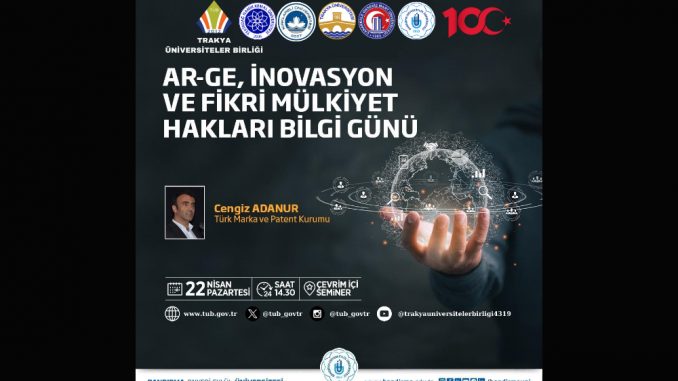 Trakya Üniversiteler Birliği (TÜB) “Ar-Ge, İnovasyon ve Fikri Mülkiyet Hakları Bilgi Günü” Düzenlendi. Tarih: 22 Nisan 2024