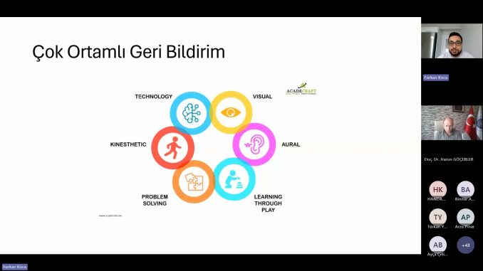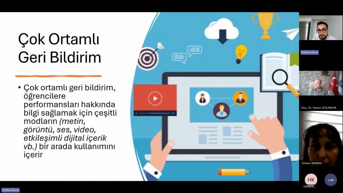 Seminerde yabancı dil öğretiminde çok ortamlı geri bildirimler ile sınıf içi geleneksel yazılı veya sözlü geri bildirimlerin farklarına değinildikten sonra çok ortamlı geri bildirim hazırlamada kullanılabilecek dijital araçlar tanıtıldı. Çeşitli üniversitelerden katılımcılarla gerçekleştirilen seminer, katılımcıların soru ve yorumlarıyla tamamlandı.