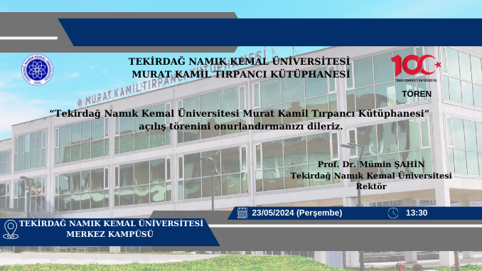 “Tekirdağ Namık Kemal Üniversitesi Murat Kamil Tırpancı Kütüphanesi” Açılışına Davetlisiniz. Tarih:23.05.2024 21 Mayıs 2024 TÜB DUYURULAR 0 TweetlePaylaşPaylaşPin0 Paylaşımlar