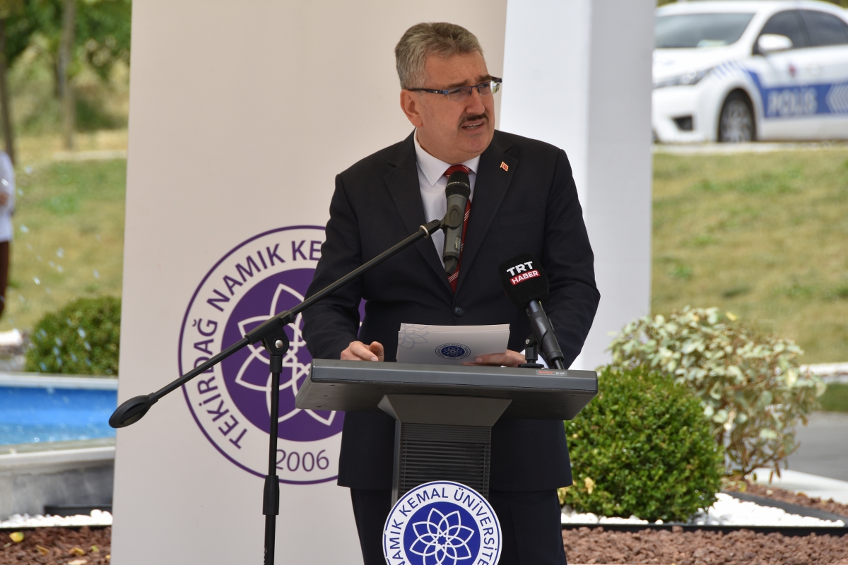 Trakya Üniversiteler Birliği Dönem Başkanı  ve Tekirdağ Namık Kemal Üniversitesi Rektörü Prof. Dr. Mümin ŞAHİN, Merhum Murat Kâmil TIRPANCI’ya Allah’tan rahmet, ailesine ve sevenlerine başsağlığı dileyerek başladığı konuşmasında, “Üniversiteler bilgi üretiminin ve yayılmasının en önemli merkezleridir. Bu bilgi üretiminde ve yayılmasında ise kütüphaneler hayati bir rol oynar. Kütüphaneler, sadece kitapların saklandığı mekanlar olmanın ötesinde, öğrenciler, akademisyenler ve tüm araştırmacılar için bilgi ve kaynak bulma, araştırma yapma ve öğrenme imkânı sunan önemli kurumlardır. Murat Kâmil Tırpancı Kütüphanesi, 12.000 metrekarelik alana sahip ve bir günde 2.000 kütüphane kullanıcısına 7 gün 24 saat hizmet verebilecek kapasitede tasarlanmış ve hizmete açılmıştır. 74.000’den fazla basılı kitap, 50.000’den fazla e-dergi, 4.100’den fazla tez, 11.500 açık arşiv yayını ve 650’den fazla süreli yayına ev sahipliği yapmaktadır. Modern ve işlevsel tasarımıyla, öğrencilerimize ve akademisyenlerimize en iyi çalışma ortamını sunmayı amaçlamaktadır” dedi.