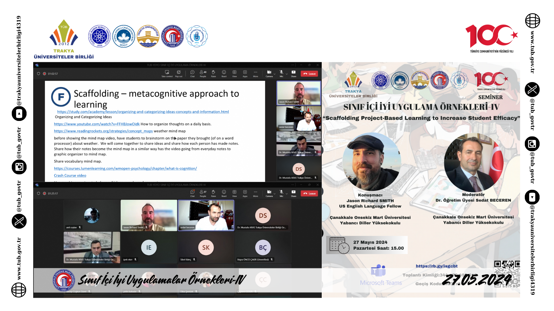 Çanakkale Onsekiz Mart Üniversitesi Yabancı Diller Yüksekokulu Müdürü Dr. Öğr. Üyesi Sedat BECEREN’in moderatörlüğünde gerçekleştirilen seminerde, aynı yüksekokulda görevli öğretim elemanı Öğr. Gör. Jason Richard SWITH  sunumuyla etkinliğe katkı sağladı.