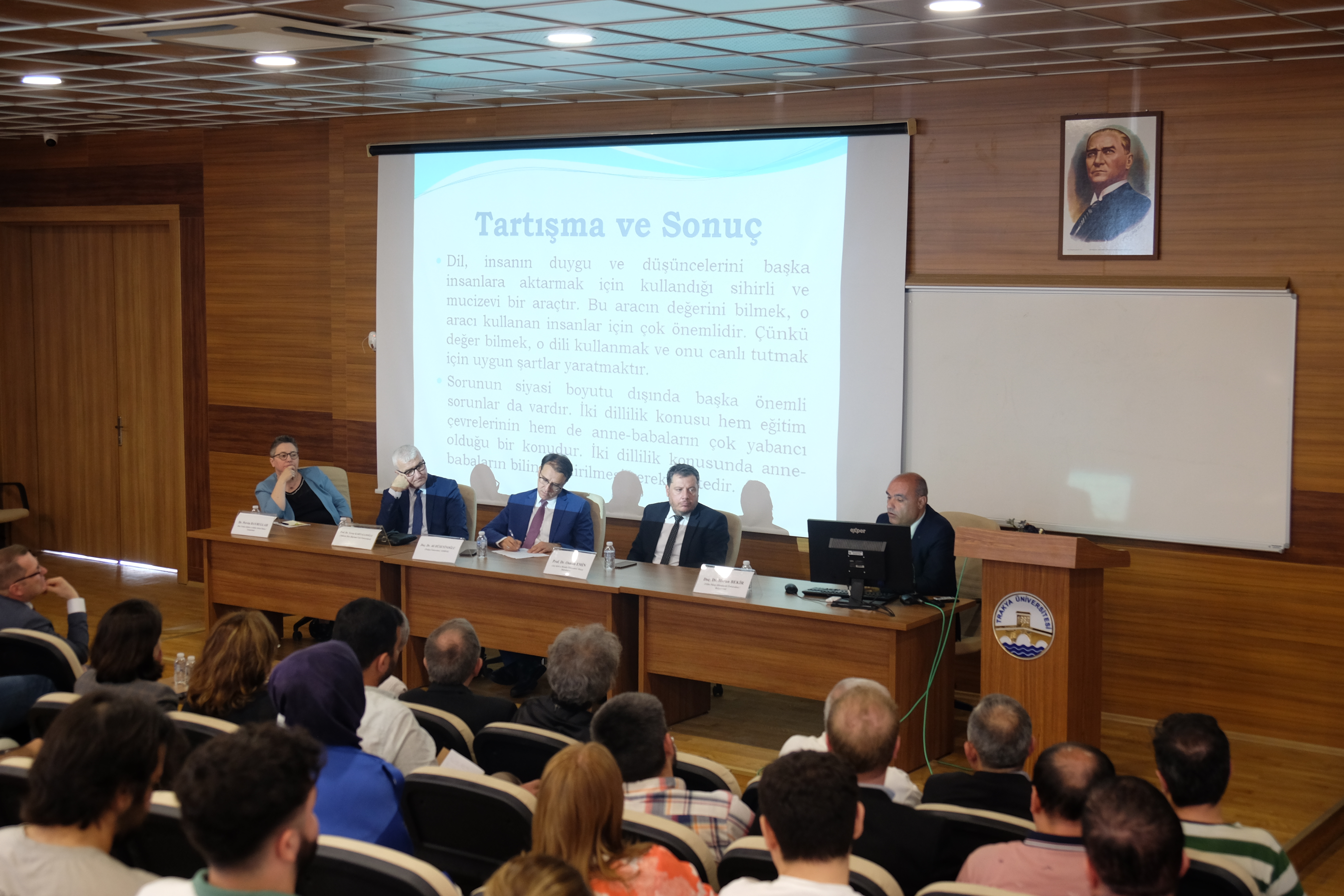 Doç. Dr. Harun Bekir, tarihi süreçte Bulgaristan’da Türkçeye yönelik farklı yaklaşım örnekleri görmenin mümkün olduğunu, günümüz açısından değerlendirildiğinde Bulgaristan’ın, dil politikaları sınıflandırılmasında homojen kategoriye girebilecek bir örnek olarak karşımıza çıktığını çünkü Bulgarcanın tüm resmi kurumlarda kullanılma zorunluluğu bulunduğunu ve sosyal hayatta da baskın dil olduğunu belirtti. Doç. Dr. Harun Bekir, 1950’li yıllarda Türkçenin kullanılmasının teşvik edildiğini, 1960’lı yıllarda baskıcı politikalar başladığını, tek dil yaklaşımlarının benimsendiğini, yetmişli yıllarda başlayan ve seksenli yılların sonuna kadar takip edilen tek dilli yaklaşım sonucu Türk diline bir problem olarak yaklaşıldığını, demokratik sisteme entegre olma çabaları sırasında ise ana dili olarak Türkçe öğretimine bir hak olarak yaklaşılmasının benimsendiğini ifade etti.