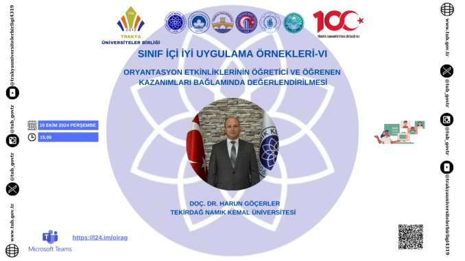 Trakya Üniversiteler Birliği “Sınıf İçi İyi Uygulama Örnekleri-VI”. Davetlisiniz. Tarih:10 Ekim 2024