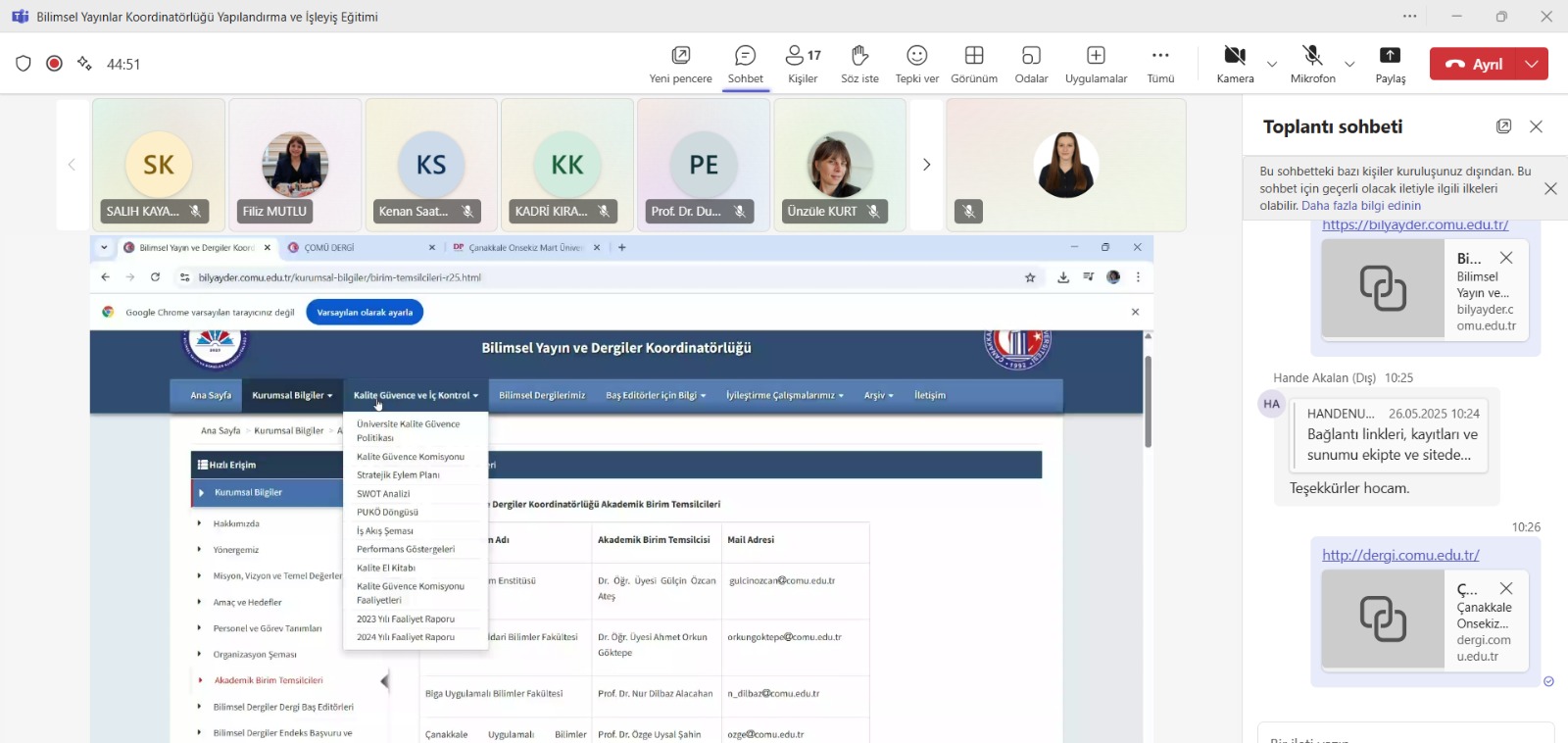 Bilimsel Yayın ve Dergiler Koordinatörlüğü Yapılanma ve İşleyiş Eğitimi Gerçekleştirilidi. Tarih:26.05.2025