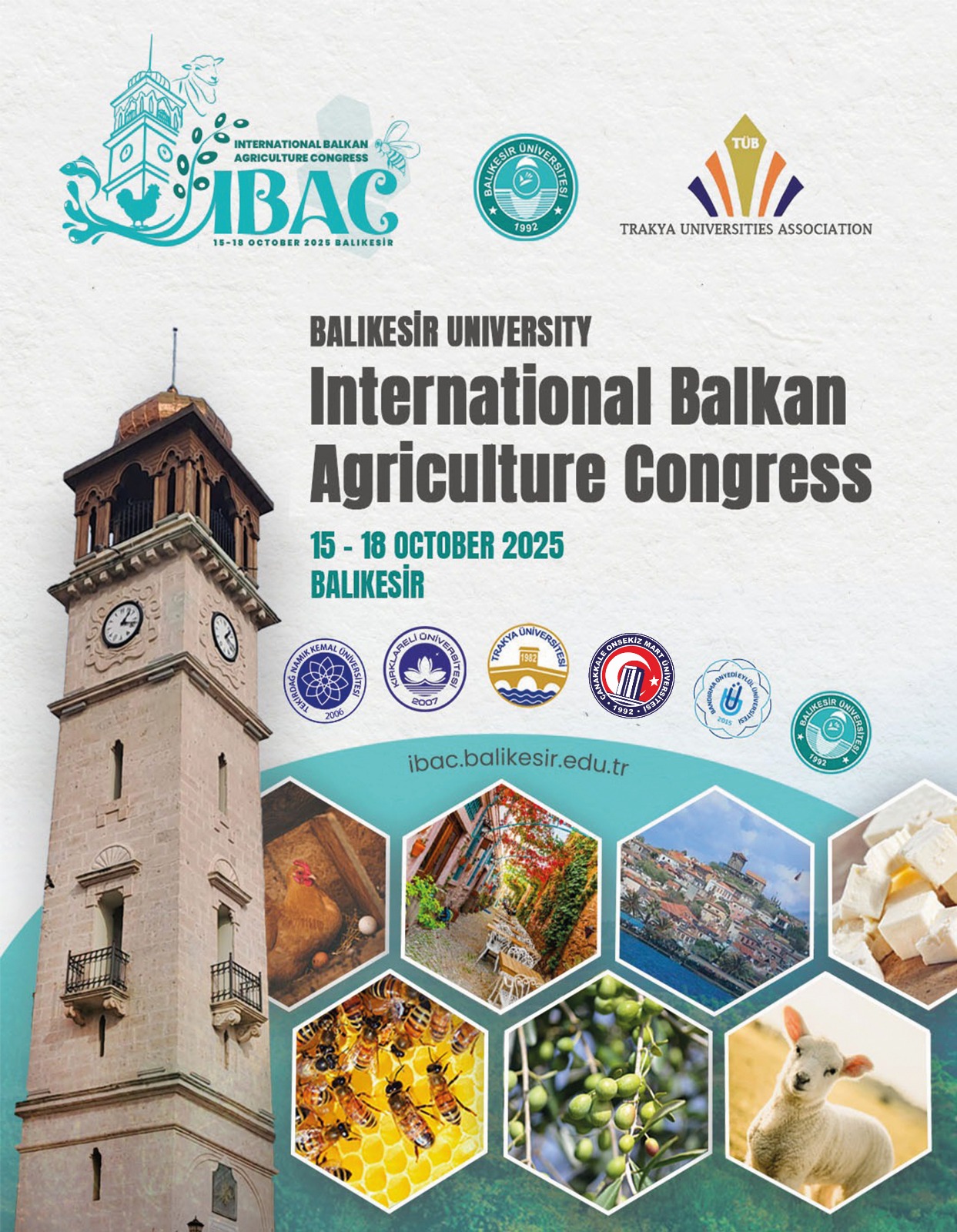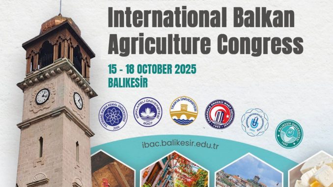 Balıkesir Üniversitesi ev sahipliğinde, Trakya Üniversiteler Birliği (TÜB) iş birliğiyle düzenlenecek olan International Balkan Agriculture Congress, 15–18 Ekim 2025 tarihleri arasında Balıkesir’de gerçekleştirilecektir.