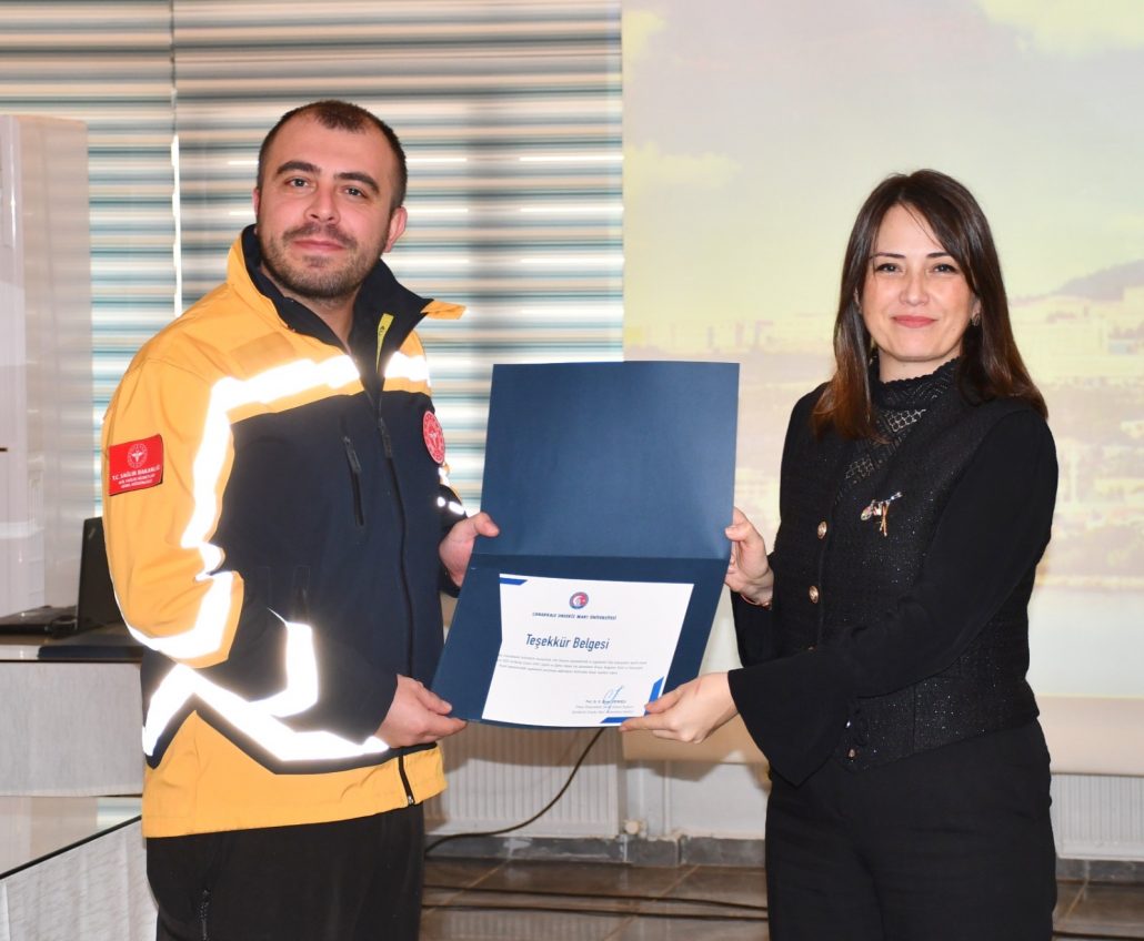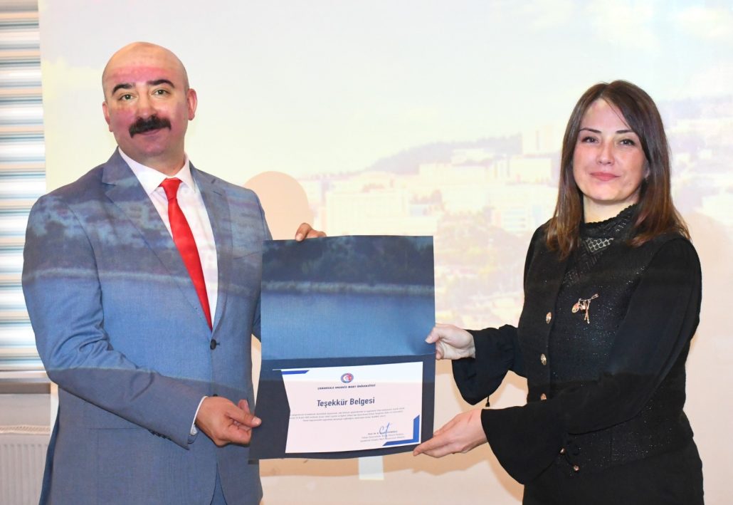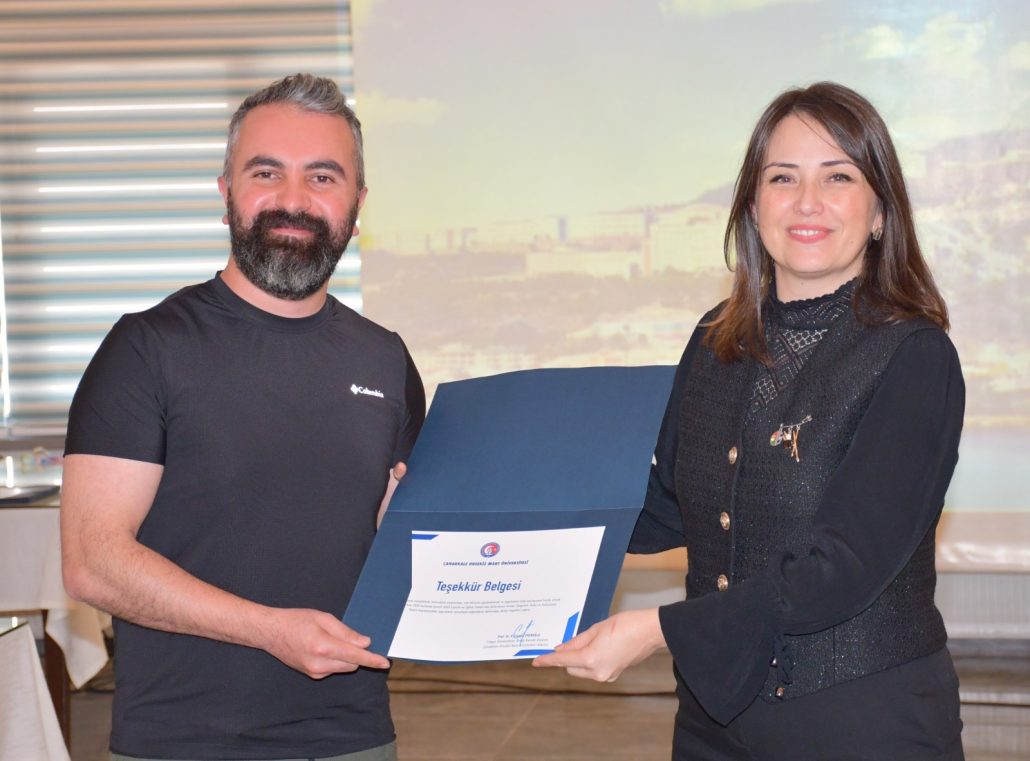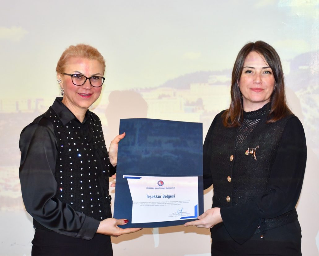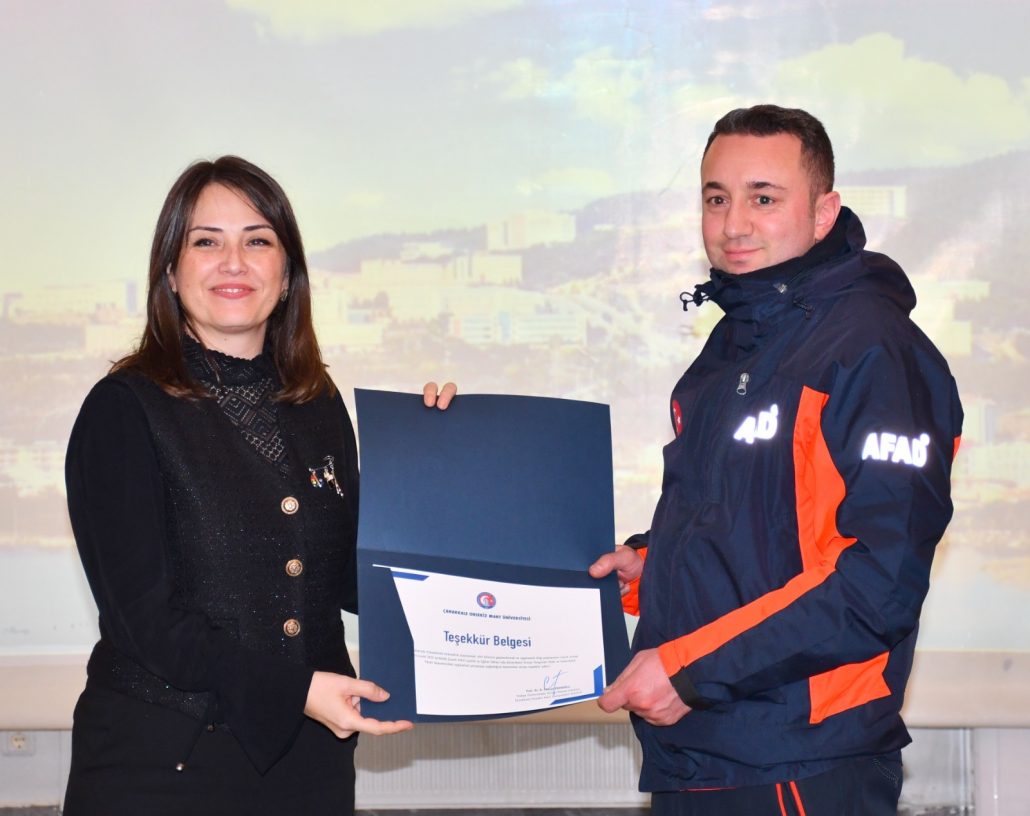 Panelin ardından gerçekleştirilen protokol konuşmaları sonrasında, Çınarlı AFAD Lojistik ve Eğitim Merkezi’nde düzenlenen etkinlikte, katkı sunan katılımcılara ödülleri Çanakkale Onsekiz Mart Üniversitesi Rektör Yardımcısı Prof. Dr. Evren Karayel Gökkaya tarafından takdim edildi.